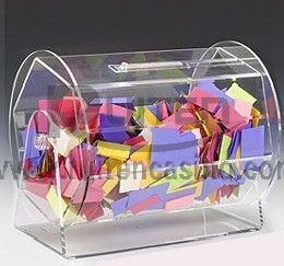 | This is Acrylic Raffle Drum ,the size is 12inch diameter,16inch wide and 13inch high,the rack board and the round wheel board 's thickness is 6MM it is very sturdy,the trap ticket narrow door is the structuretion that intromittent board with magnet,it is firm and simple.and also with door with lock ,the bearing is very smooth and it features fluid rotation for thorough ticket mixing when you turn the side wheel,Clear acrylic and colored acrylic drums are available. |