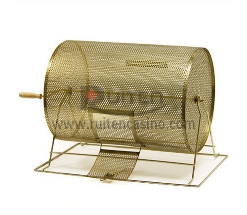 Our raffle drums are made of polished brass plated steel. measuring 15" dia and 21" width,the total height is 18.5".Secure latch holds the trap door closed during use.the sticker slot on the opposite of the door so that it is convenient for people put sticker into it,it is very beautiful surface.