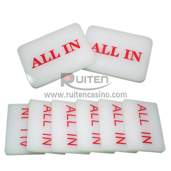 This ACRYLIC ALL IN button measureing 85mm x60mmx10mm, laser carve then painting oil by hand and polished,goog for texas hold'em