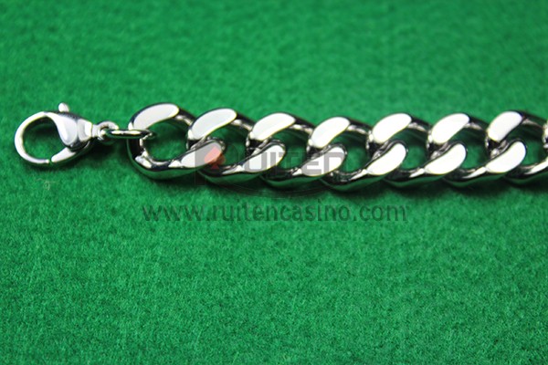 This is new developed poker bracelet for poker player and or winner, made from stainless and pollish it,good quality,total 22cm lengh and 1.2cm width of the chain. 22gram. perfect for poker room winner tropher and poker player, very cool bracelet.