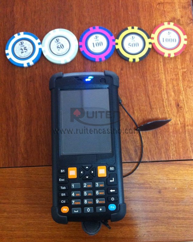 This is our company developed FRID ID casino chip(SMOS chip),measuring 43mm diameter and 3.3mm thickness, we do chip with uv lable for customer and customer will code value in the chip themselves,our company can supply codeing chip and reading chip machine,easy to operate and safe for casino. no one can copy the chip. we also can supply " CHIP SELLS SETTLEMENT SYSTEM", very convenint for official casino. if want to learn more,please don't hesite to contact with us.