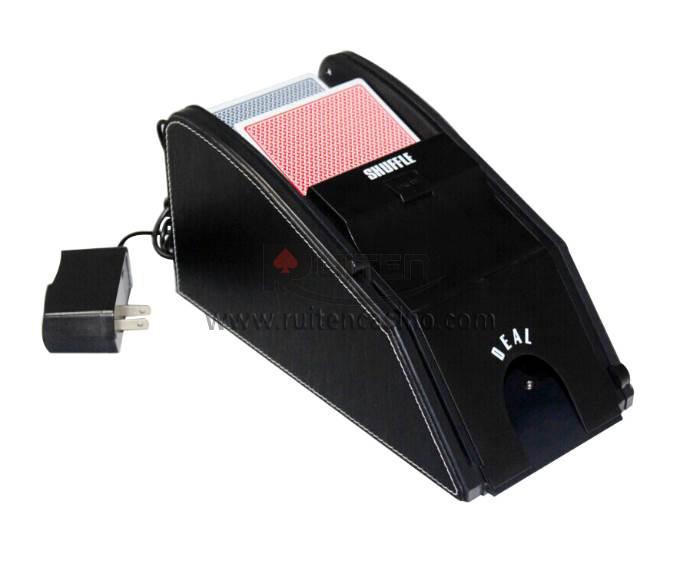 Battery operated: the card shuffler requires 4 AA 1.5V type alkaline batteries.