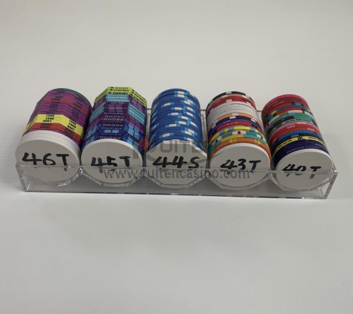 This is new 100ct multi size chip tray,made from high clear pc material, meausre 24cm length,7.5cm width and 2.85cm high, 129g per piece,not damage avaible for 20pc standard 3.3mm thickness chip ,special inner design for 40/43/44 /45/46mm chip,