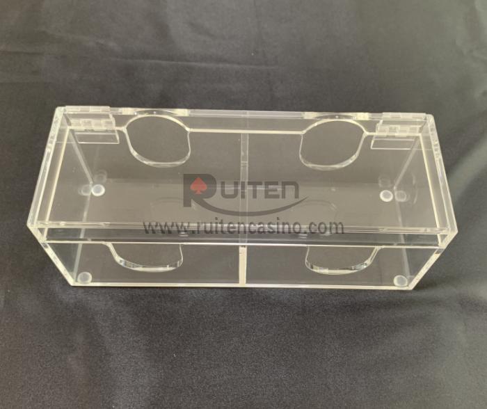 This is acrylic plaques chip box,made from acryic board and handcraft, 4mm thickness box,for 40pc 85x53x3.8mm plaques chip capacity.20pc per row,