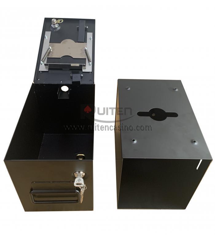 THis is professional casino cash drop box with sleeve,measuring 274mmlegth,193mm width and 238mm high,professional and official casino cash box design.
